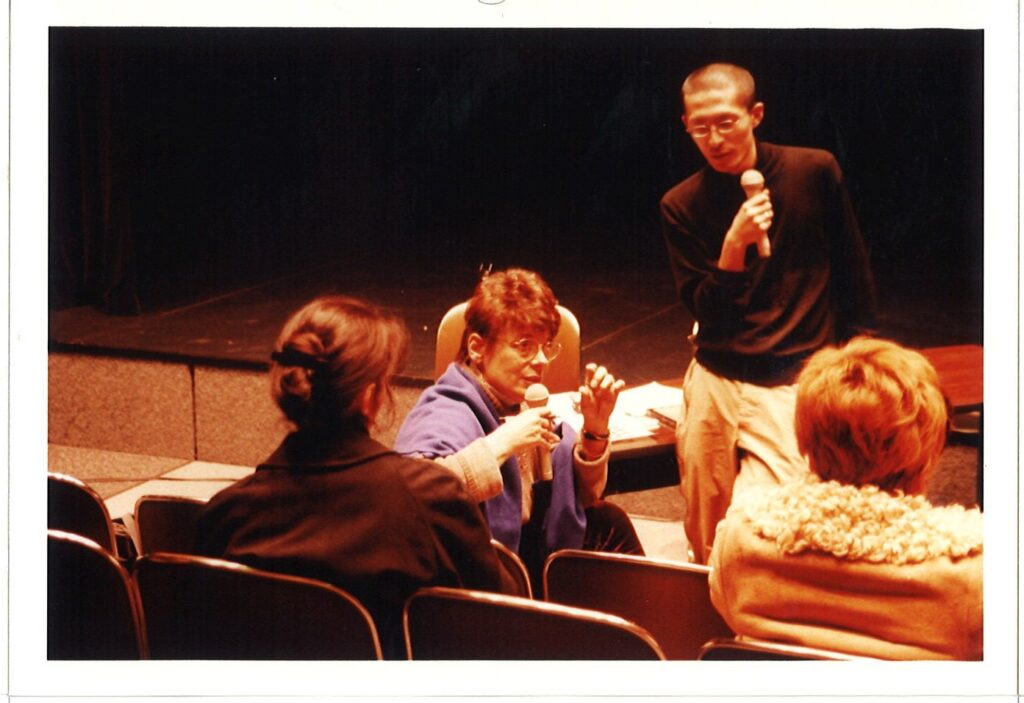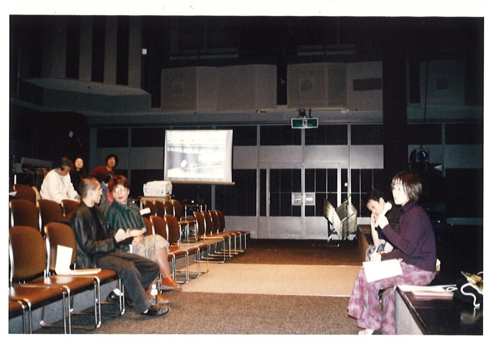 まだ⾼校の国語教師をしつつ踊っていた当時、勤めていた学校を思い切って休んで参加した。それなりの覚悟で臨んだつもりであったが、撃沈。初⽇は帰りの⾞中で涙が⽌まらず、最終⽇は逆に感謝が⽌まらず、数⽇間の出来事とは思えない濃密な体験であった。前バニョレ国際振付家賞ディレクターのロリーナ・ニクラスさんによる「振付家のための構成⼒養成講座」第⼀回。2001 年のことである。5組の作家が 30分以内の作品を初⽇に上演し、講師のロリーナや通訳である映画評論家の⽅などから様々な意⾒をいただく。そして⼆⽇⽬からの絵画分析を中⼼とする講座を受けたのち、リメイクした同作品を最終⽇である四⽇⽬に再度上演するという流れ。20 年以上の年⽉を経た今でも、鮮やかに蘇ることが幾つもある。