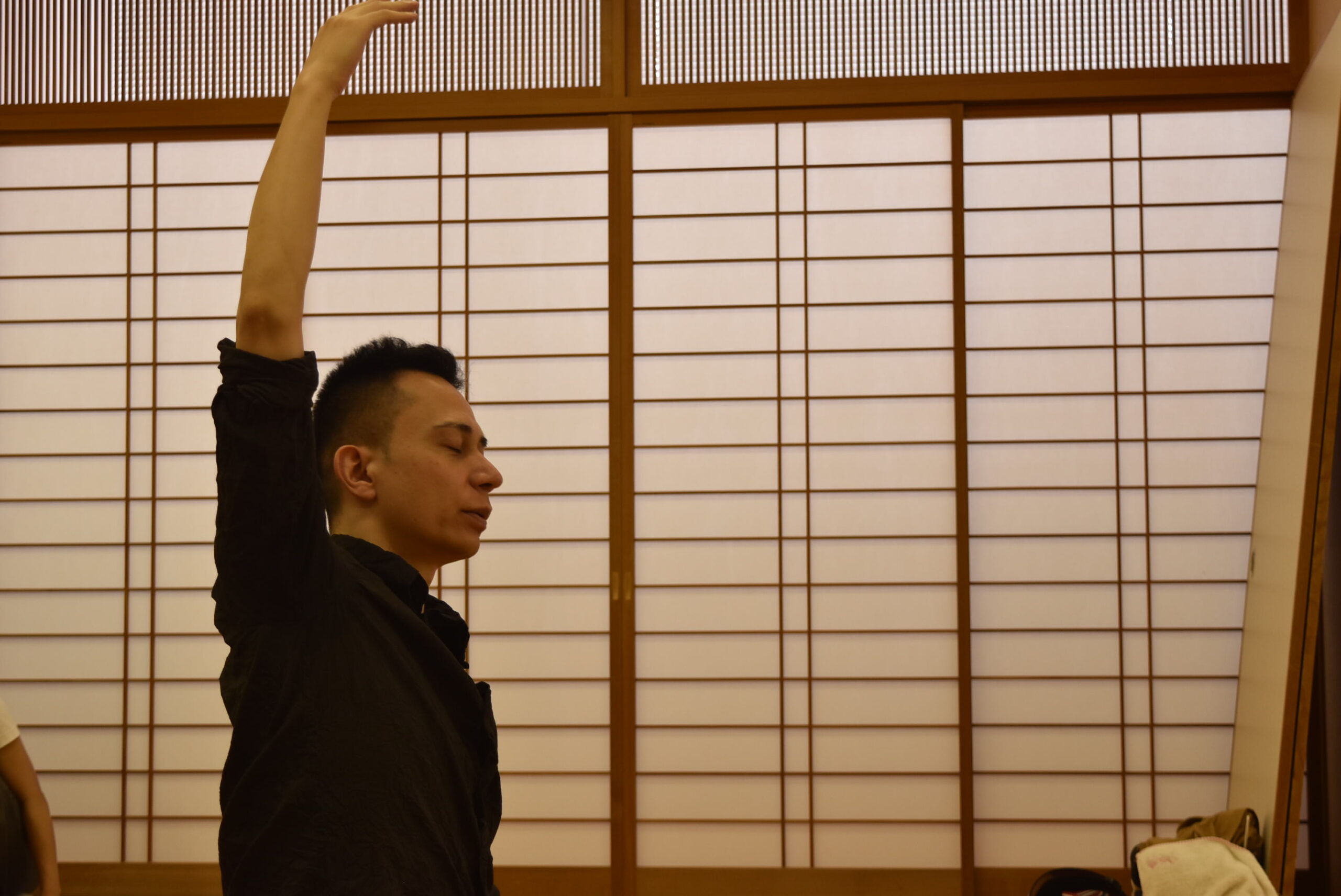 私が舞台で舞う前に行っておりますルーティンを、シンプルな形にまとめたワークショップでございますが、参加者の皆さまは床に寝ころんだ状態で、ゆっくりとご自身の身体に向き合いながら、深部筋肉や関節を丁寧に解きほぐしていただきます。私が動きのデモンストレーションを行った後、皆さまに実践していただくのですが、参加者の皆さまの身体にはそれぞれの歴史が刻まれており、またその日の体調によっても身体の状態は刻々と変わってまいります。ご自分の身体の状態を感じとり、違和感のある箇所をいたわりながら、無理せずにゆっくりとほぐしてゆくことが大切なのですが、私は呼吸と筋肉の連動をふまえたお声がけを意識しながら、皆さまにどの箇所をゆるめていったら良いかをお伝えするように、心がけておりました。