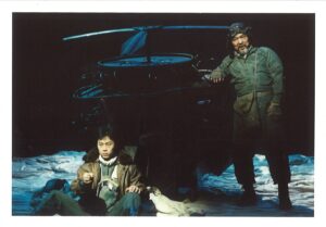 作品の内容は、“砂漠と隕石のラブストーリー”である。「墜落は落ちるものと待ち受けるものとの間の愛の引力である」とは作者の想さんの弁。どこまで北村想のやさしい世界を表現できるであろうか。稽古はアイホールの2階にあるカルチャールームで約1ヶ月に渡って行うことが決まっている。9月17日、初顔合わせ。みんなが緊張している。特に大阪チームの緊張感は強い。そして、稽古初日が終わり、翌日の朝電話が鳴った。山下千景からであった。声が緊張している。「何やろ」と思っていると、「金さんが倒れて、深夜救急車で運ばれ、入院したんです」。頭に浮かんだのは金さんの体のことと「これでこの公演終わりや」。金さんは2日後に戻ってきた。病名は「膀胱結石」。石さえ動かなければ、超人金守珍は不死身である。その後、薬を飲みながらの金さんを中心に稽古は進んだ。が、役者、演出家はじめスタッフ全員が集団としての意志の伝達がうまくいかず、混成チームであるプロデュース公演の欠点が露出してしまっている感じだ。稽古場を初日のステージである名古屋に移動した後も、作品はうまく出来上がらない。そうこうしている間に、仕込みが始まった。