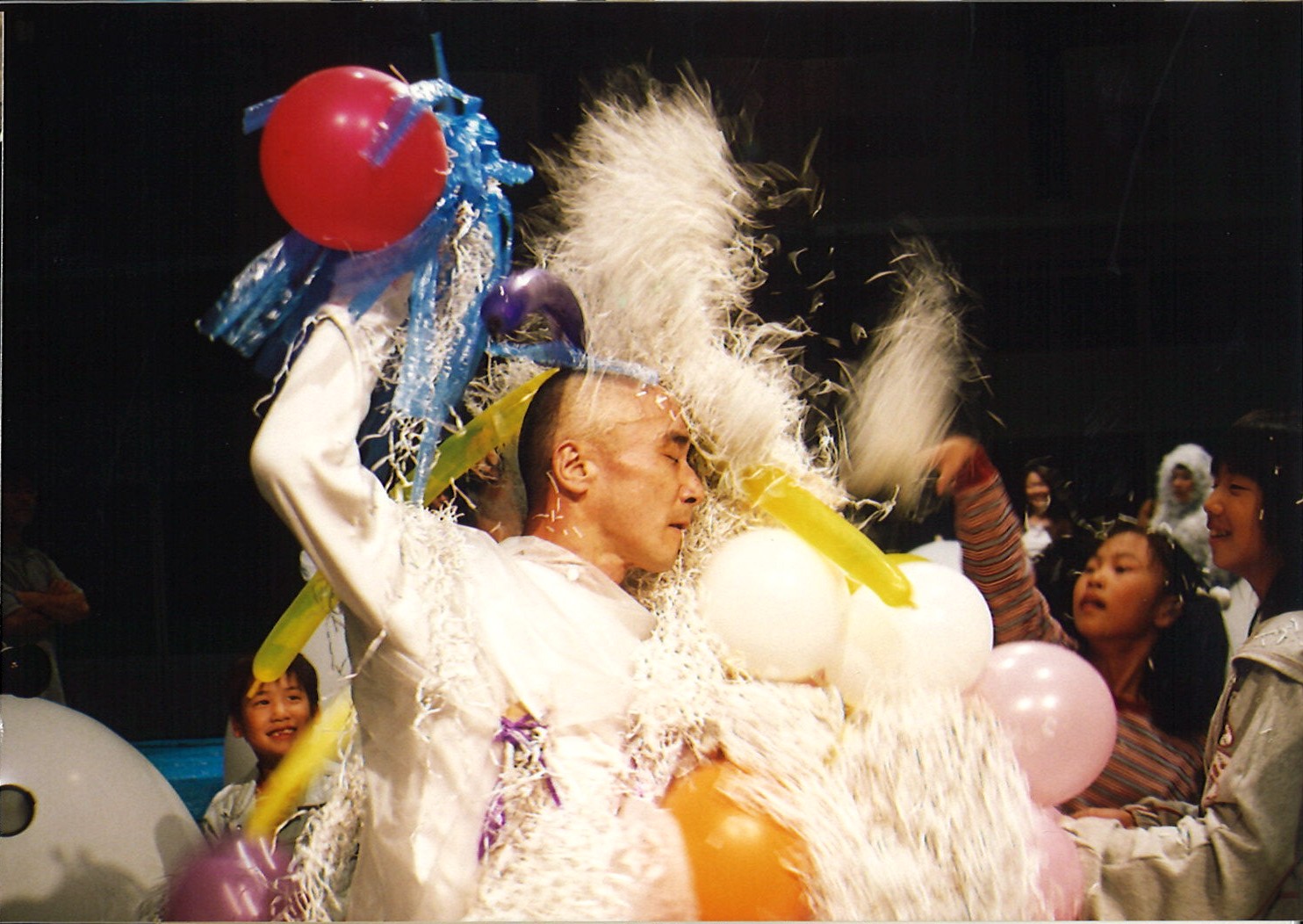 この『プレイ!』は、どなたでも参加できる終日開催の企画。夕方16時までは造形ワークショップで、最後の1時間が舞踏家岩下徹さんと音楽家の即興セッションだった。造形ワークショップは、素材と遊び心をくすぐるアプローチが用意され、あとは子ども次第という自由度が高いもので当時の私には新鮮だったのだが、さらに“忘れられない光景”は後半の即興セッションでやってきた。