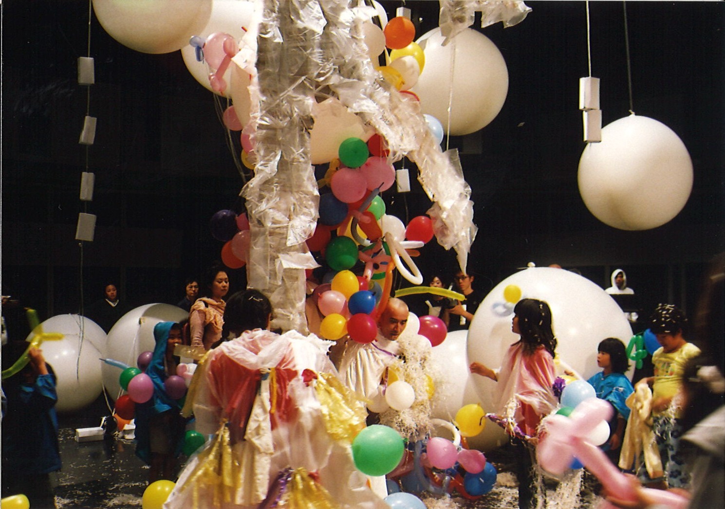 それは、アイホールで1995年から9年間実施されていた『<親子で遊ぼう!参加型イベント>プレイ!』だ。通常は劇場前の広場で実施していたが、私が見学した2003年は雨天のため劇場内での開催だった。