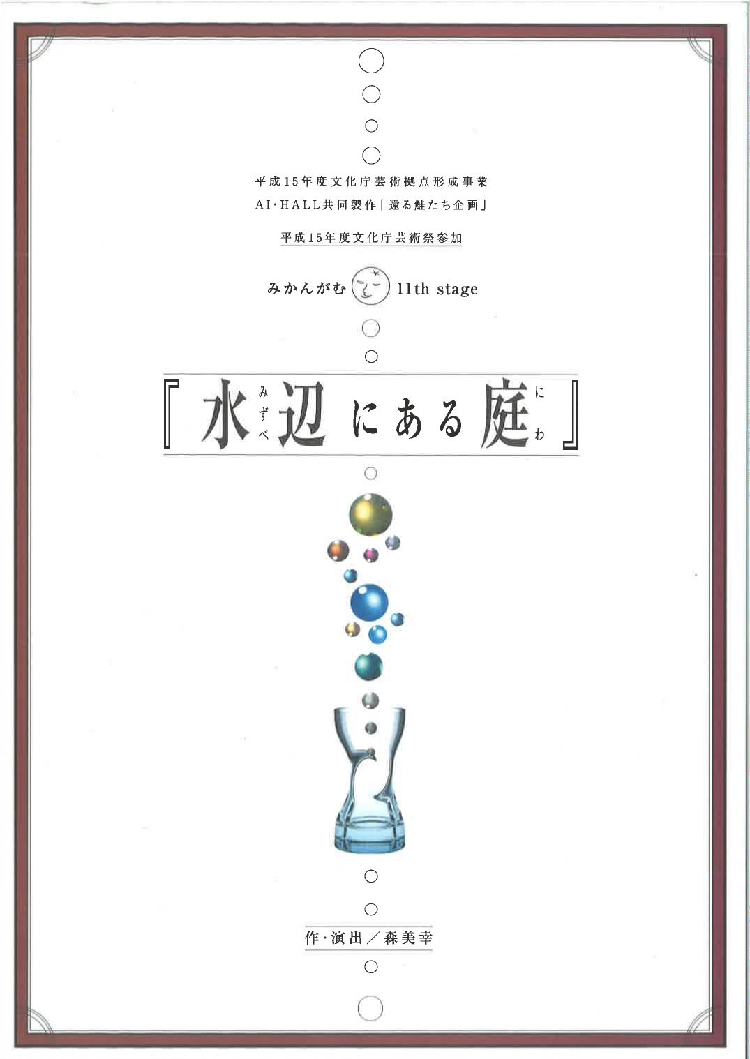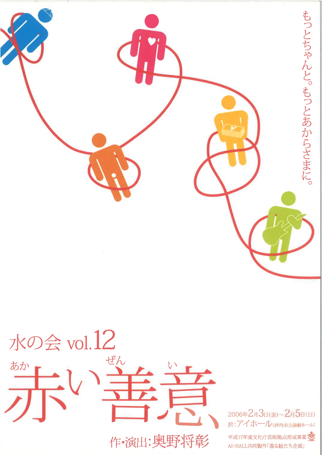 「演劇ファクトリー」や「伊丹想流私塾」や演劇ワークショップなど、アイホールの事業を通じて結成された三つの若手劇団と共に、三年間、毎年新作を発表する継続事業。未知数の若い才能をバックアップするために、ホールとの共同製作として実施しました。