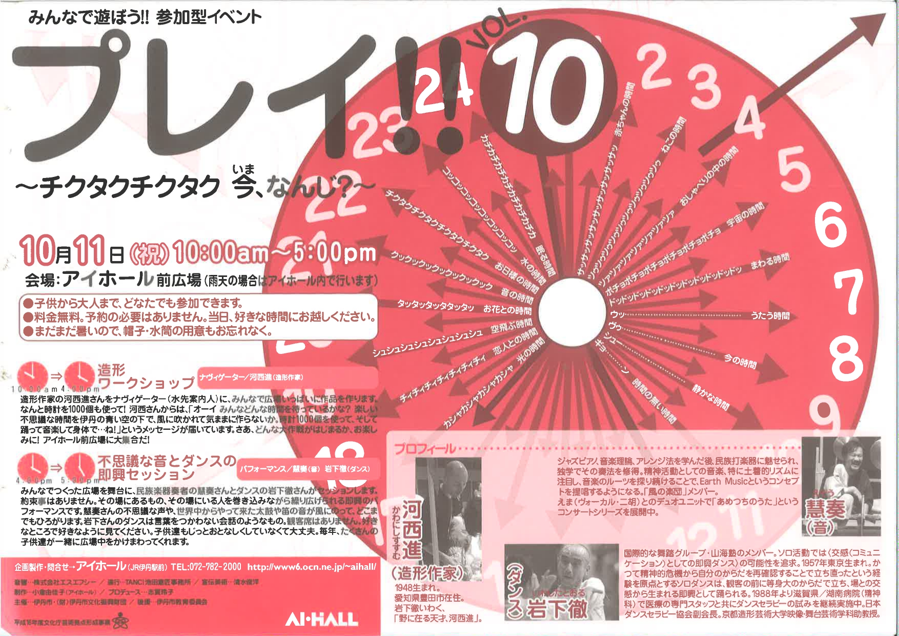 当館で9年間続いたこども向けの造形ワークショップ+ダンスパフォーマンスのイベント。造形アーティストや、演奏者は年度ごとに替わるが、ダンサーは全年度とも舞踊家・岩下徹がつとめ、新鮮味のあるコラボレーションやアイホール前の有岡ひろばを使った野外パフォーマンスが話題となった。後に展開される『かむじゆうのぼうけん』や『こどもえんげきぱーく」など子ども向けのワークショップに影響を与えた事業。