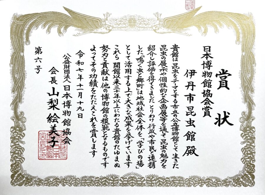 伊丹市昆虫館が日本博物館協会賞を受賞しました!