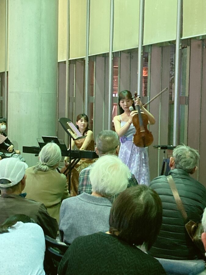 今回のロビーコンサートでは、ヴィオラ奏者の増田佳子(ますだ・かこ)さんとピアニストの中まゆり(なか・まゆり)さんに、耳なじみのある名曲の数々を演奏していただきました。