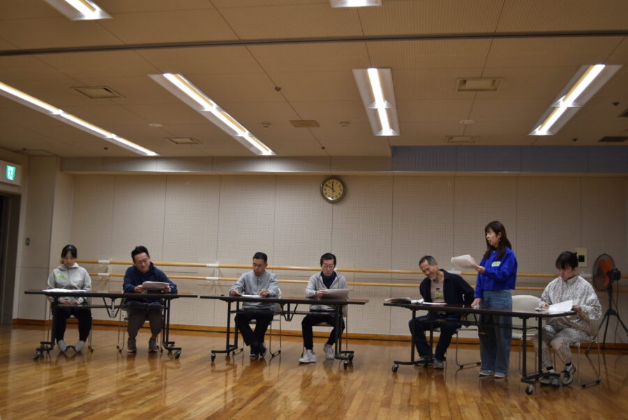 2回目はさらに動きをつけてみることに。自分の主張をするところは立って発言するが、立つタイミングも自分の思うタイミングで。役が発するセリフをどういったらいいのか試行錯誤も。