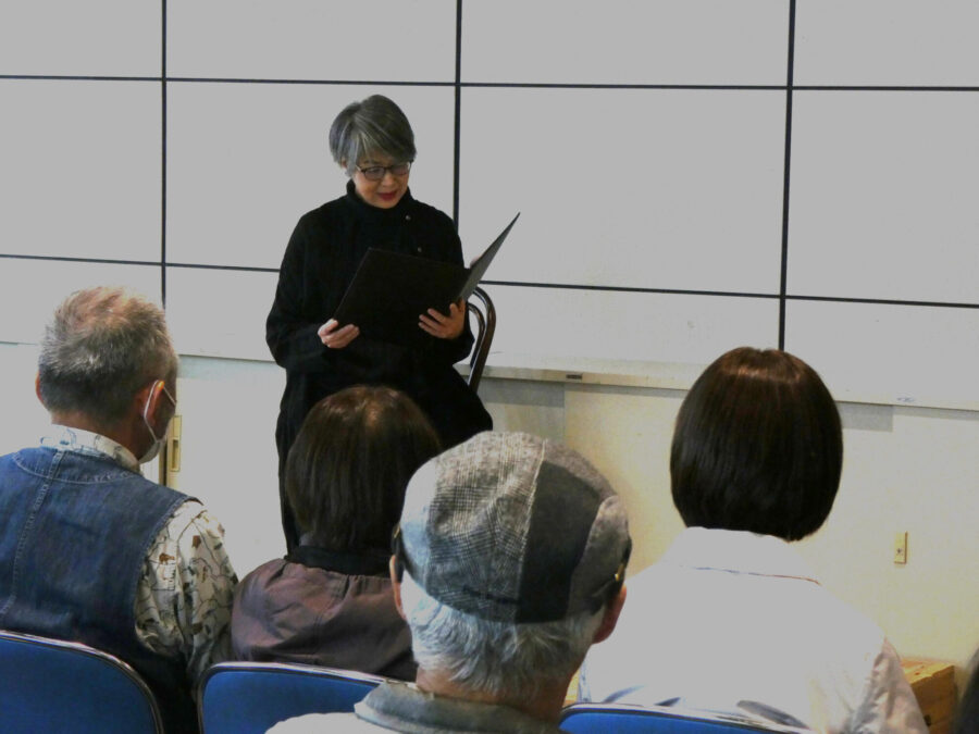 文章を声に出して読むことは、奥が深くとても難しいです。林さんからのアドバイスに頭を抱えながらも、みなさん熱心に耳を傾けておられます。講座の間隔が約1か月ほど空きますので、その間ご自宅でお稽古を重ねられ、その成果は毎回の講座で如実に表れます。