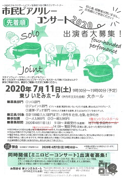 2020年5月9日(土)14:00開演を予定していました「田尻洋一トーク&ピアノコンサートシリーズin伊丹vol.85 友情!メンデルスゾーン&シューマン」の開催を中止します。(振替公演はございません。)