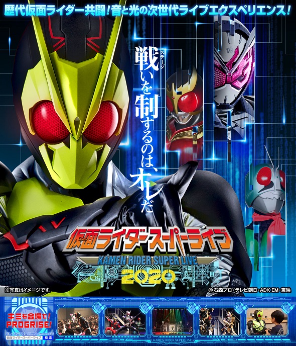 お父さんが大好きだった伝説の仮面ライダーから、現在放送中の仮面ライダーゼロワンまで、ライブには多数の仮面ライダーが登場します!!