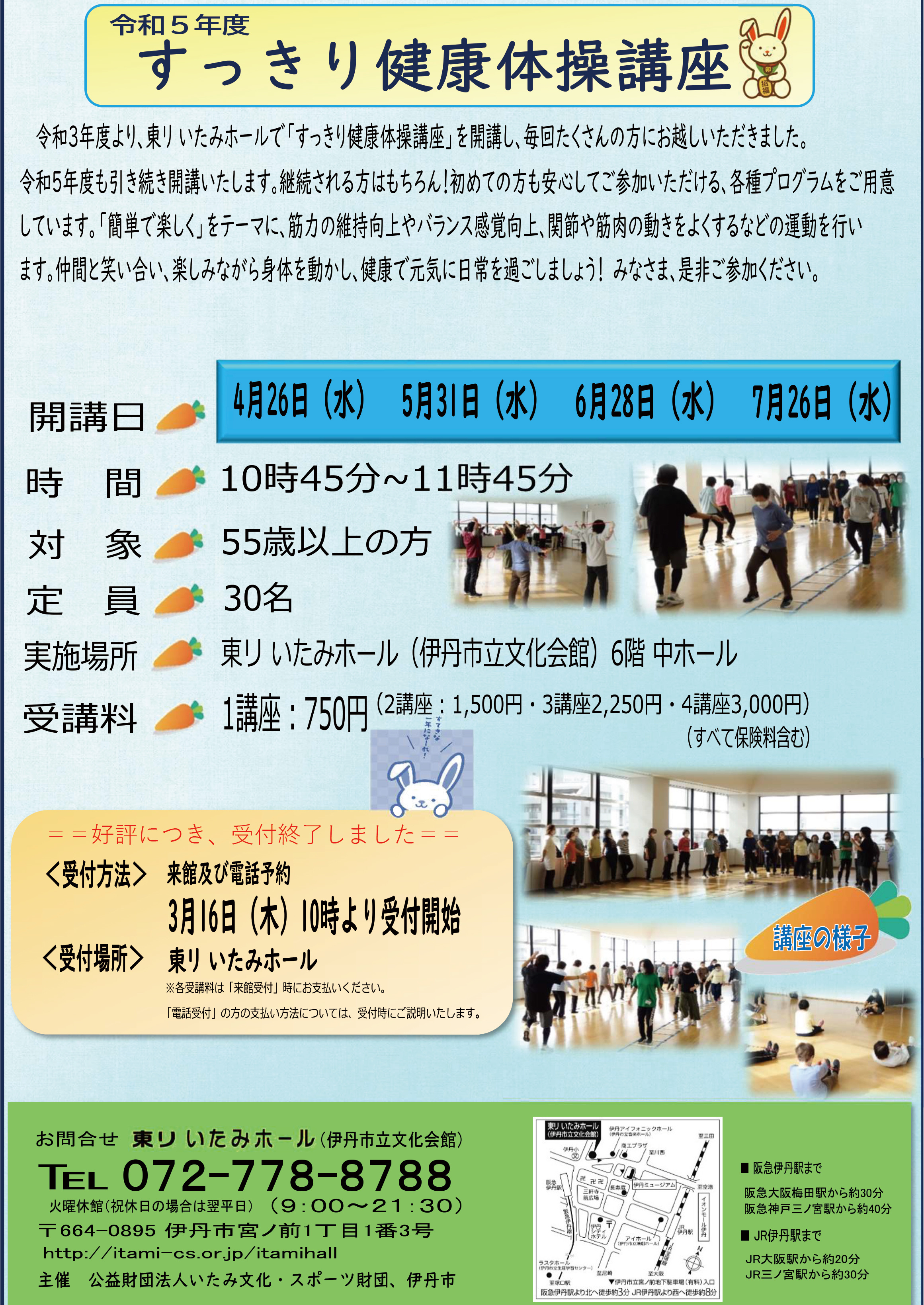 令和3年度より、東リ いたみホールで「すっきり健康体操講座」を開講し、毎回たくさんの方にお越しいただきました。