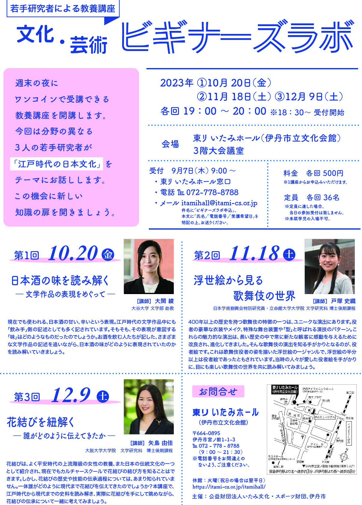 今回は分野の異なる3人の若手研究者が「江戸時代の日本文化」をテーマにお話しします。