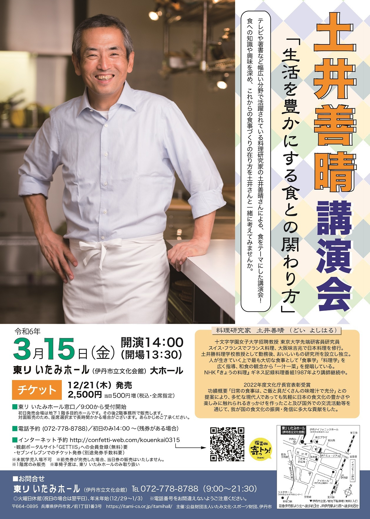テレビや著書など幅広い分野で活躍されている料理研究家の土井善晴さんによる、食をテーマにした講演会!食への知識や興味を深め、これからの食事づくりの在り方を土井さんと一緒に考えてみませんか。