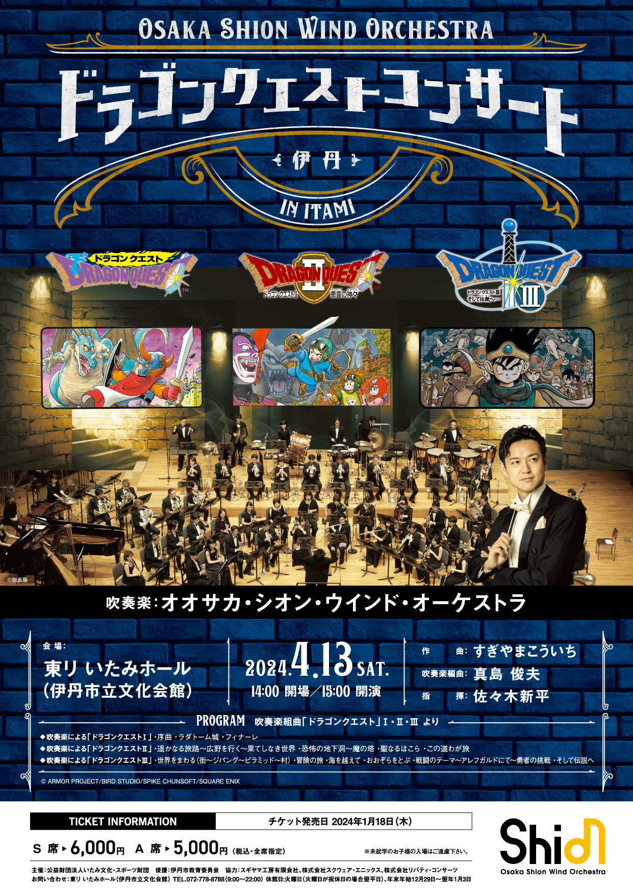 日本で最も長い歴史と伝統を誇る交響吹奏楽団"Osaka Shion Wind Orchestra"によるドラゴンクエストコンサートを開催。「ドラゴンクエストⅠ」「ドラゴンクエストⅡ」「ドラゴンクエストⅢ」のロトシリーズから選りすぐりの曲を迫力ある生演奏でお届けします。
